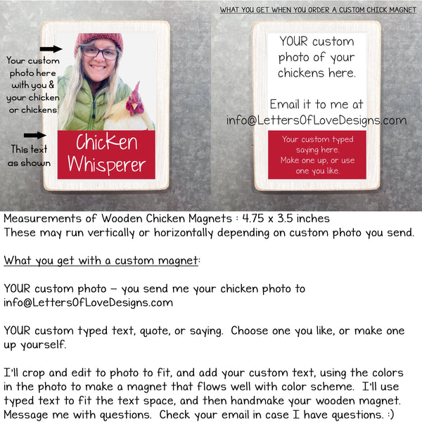 I do offer standard ones also, featuring chickens from my own flock. Select those from the drop-down box. If your selection doesn't have the word CUSTOM in it, then the magnet you've selected comes exactly as shown.