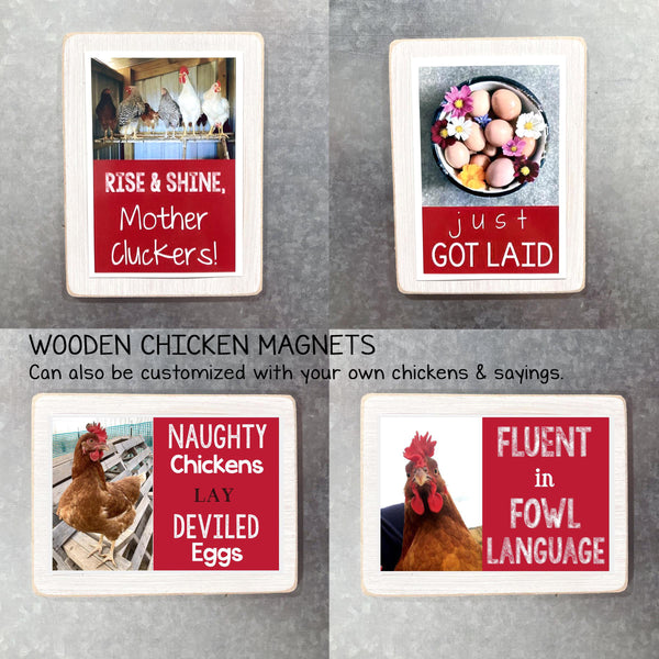 These wooden chicken magnets are perfect gifts for chicken-lovers and great pieces for your own home decor.