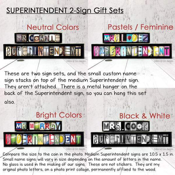 - A set of two - Both the custom name sign (small) + the Superintendent sign.